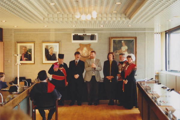 Huldiging nieuwe keizer door stadsbestuur in 1996
